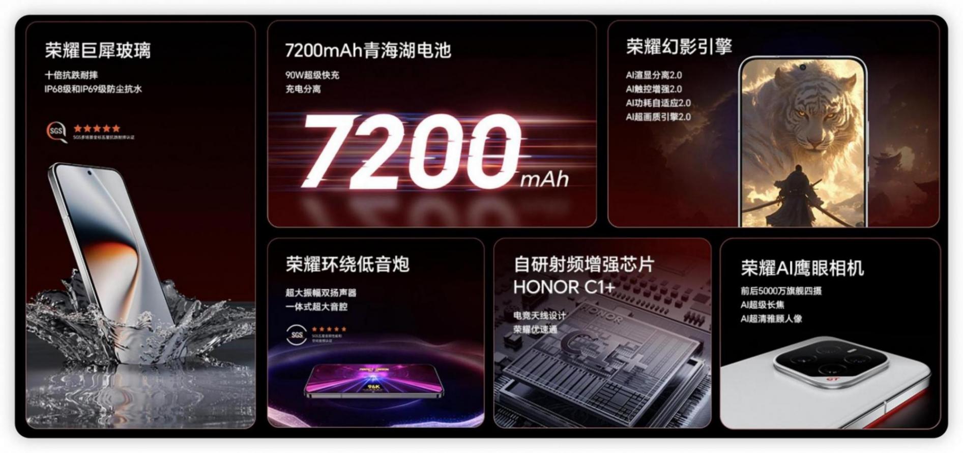 榮耀GT Pro前置50MP,后置50MP主攝(IMX906,1/1.56英寸,OIS防抖)+50MP超廣角+50MP直立長(zhǎng)焦(3X光變,IMX856,1/2.55英寸,OIS防抖)。