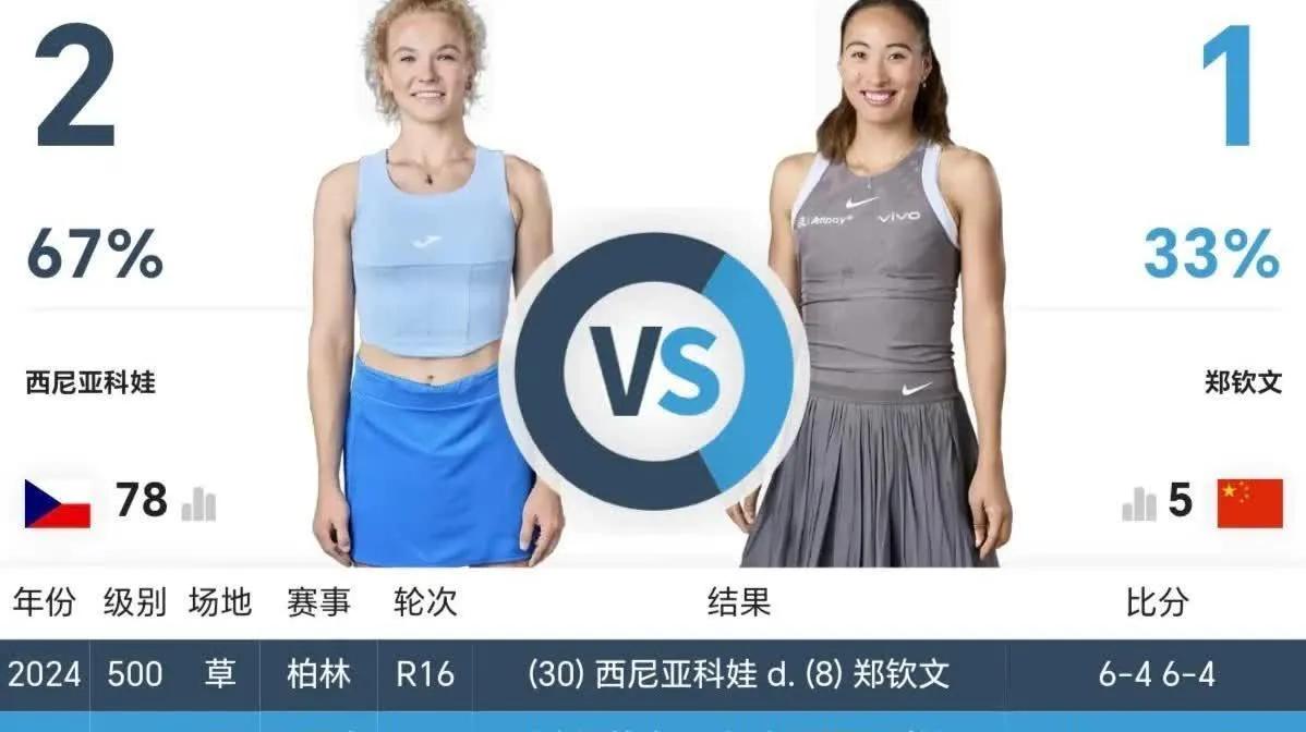 其實(shí),西尼亞科娃非常擅長(zhǎng)草地賽,反應(yīng)快、腳步靈活而且網(wǎng)前技術(shù)突出。特別值得一提的是2023年溫網(wǎng),鄭欽文就是在首輪被西尼亞科娃淘汰的。在去年的柏林站,她又一次擊敗了鄭欽文。本場(chǎng)比賽也是小鄭復(fù)仇之戰(zhàn)!