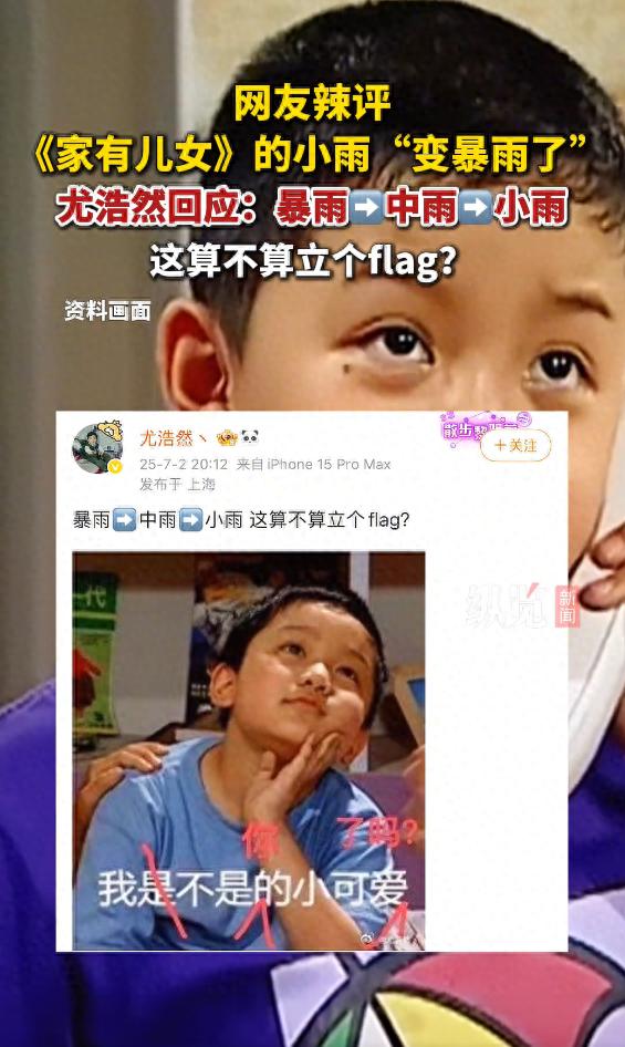 7月2日,尤浩然發(fā)文配上“小雨”表情包回應(yīng):暴雨→中雨→小雨,這算不算立個(gè)flag?(縱覽新聞)