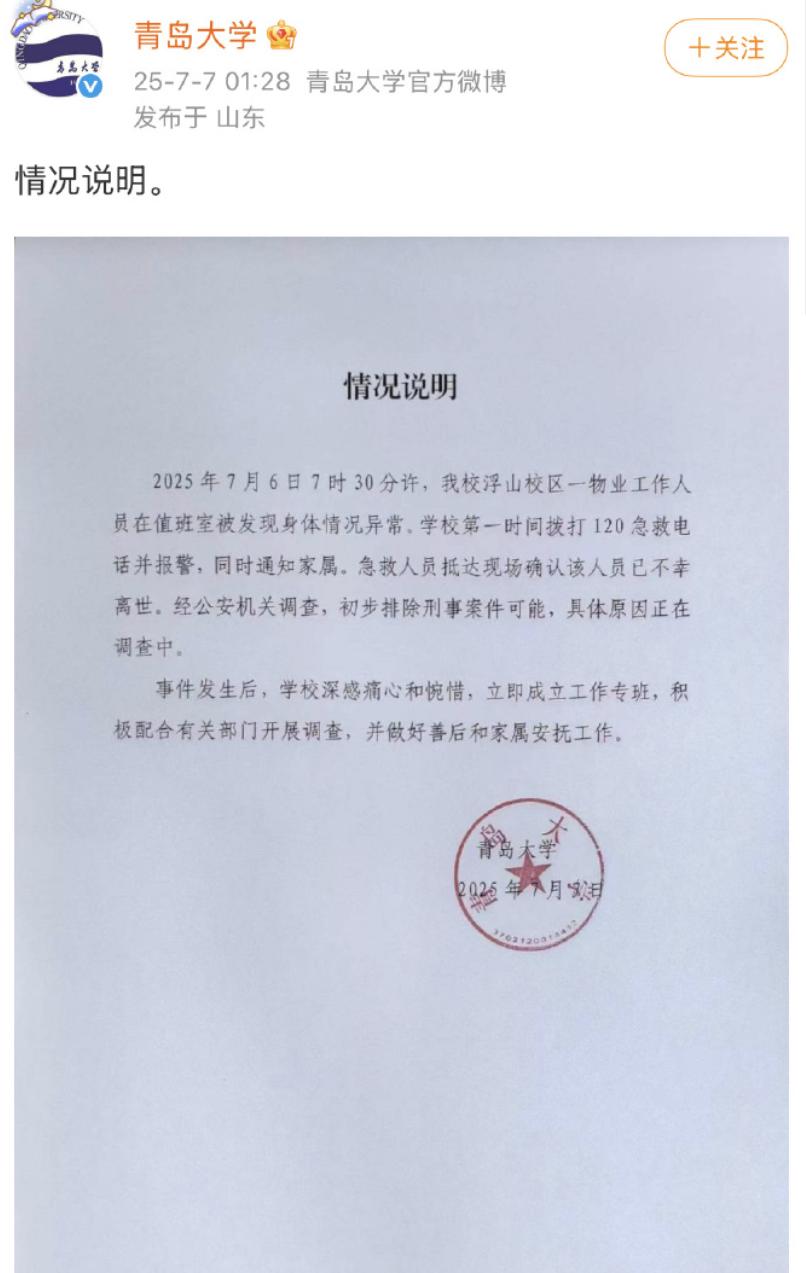 宿管大爺在被學(xué)生發(fā)現(xiàn)時已經(jīng)暈倒在房子里,因為和學(xué)生們的關(guān)系很好,事發(fā)后眾多學(xué)生在網(wǎng)上講述了大爺?shù)纳罴?xì)節(jié)以及當(dāng)時被發(fā)現(xiàn)時的情況,學(xué)校也于凌晨緊急發(fā)明情況說明:確認(rèn)了物業(yè)工作人員在值班室被發(fā)現(xiàn)身體情況異常,第一時間報警并通知了家屬。隨后被確認(rèn)不幸離世。