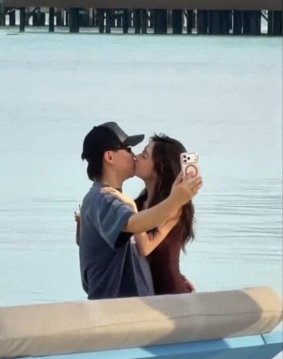 居然當(dāng)眾在海邊舉止親密,不僅距離極近、動(dòng)作曖昧,甚至后來(lái)直接接吻。