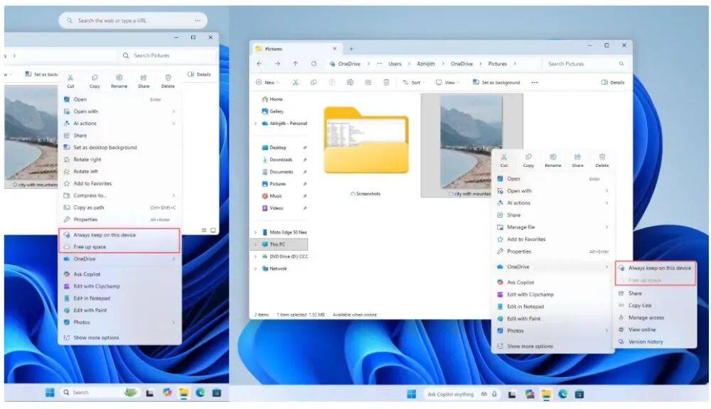 微軟已將“始終保留在此設(shè)備上”和“釋放空間”等云提供商選項(xiàng)移至相應(yīng)的云提供商彈出菜單中。