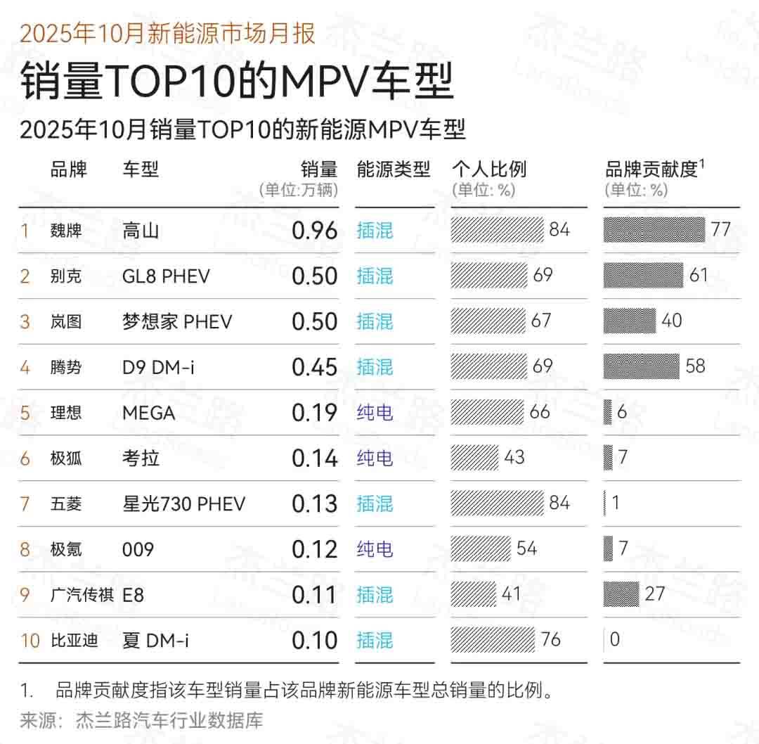 強(qiáng)勁的產(chǎn)品力直接轉(zhuǎn)化為亮眼的市場業(yè)績。2025年1-10月,魏牌累計銷量突破8.2萬臺,較去年同期實(shí)現(xiàn)2倍增長,且多個月份銷量連續(xù)破萬。細(xì)分車型表現(xiàn)同樣亮眼:全新高山家族在9、10月連續(xù)登頂MPV銷量榜,個人購車占比高達(dá)84%,位居行業(yè)第一,成功開創(chuàng)MPV家庭消費(fèi)新時代;全新藍(lán)山累計銷量突破11萬大關(guān),產(chǎn)品質(zhì)量滿意度連續(xù)兩年位列行業(yè)首位,成為11萬家庭的信賴之選。與此同時,自2021年起,魏牌成交均價(TP)持續(xù)穩(wěn)步提升,充分展現(xiàn)出與全球豪華品牌同臺競技的底氣與實(shí)力。