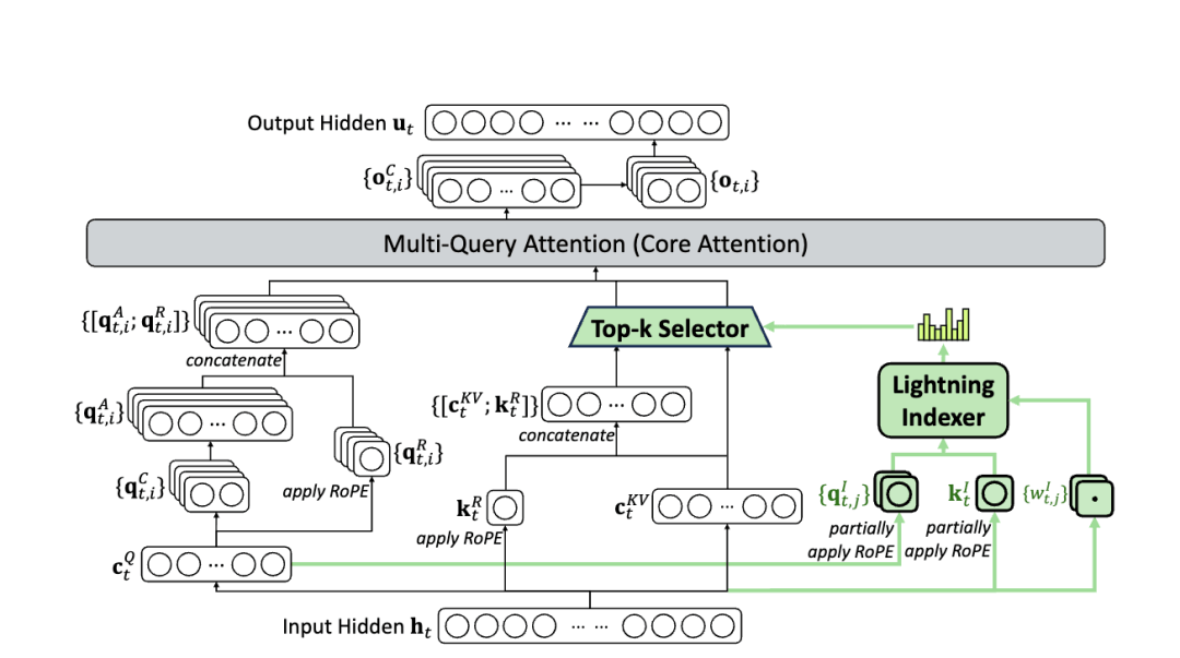 這東西在之前的 V3.2-EXP 版本里出現(xiàn)過,當(dāng)時只是測了一下 DSA 會不會影響模型的性能,現(xiàn)在是真的把這玩意給放到了主力模型上。