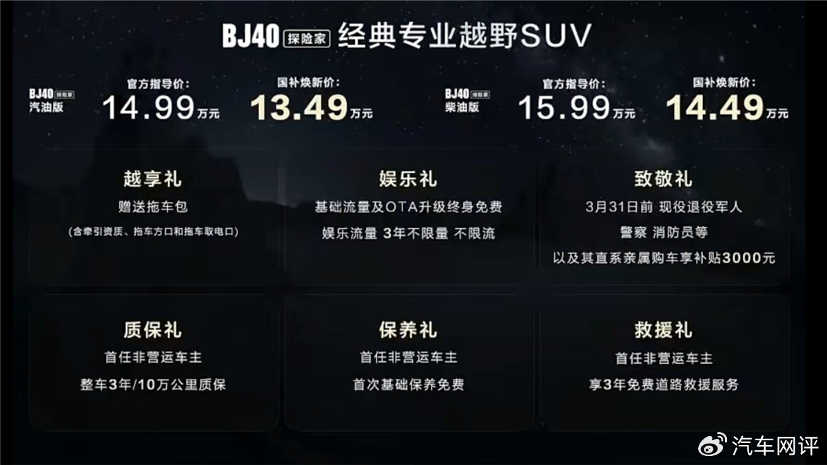 1月15日,探險(xiǎn)家正式上市,官方指導(dǎo)價(jià)14.99-15.99萬元,國(guó)補(bǔ)煥新價(jià)則為13.49-14.49萬元。同時(shí) 2.0共創(chuàng)版完成首發(fā)亮相,雙車齊發(fā)的布局不僅豐富了品牌產(chǎn)品矩陣,更在硬派越野細(xì)分市場(chǎng)引發(fā)廣泛關(guān)注。
